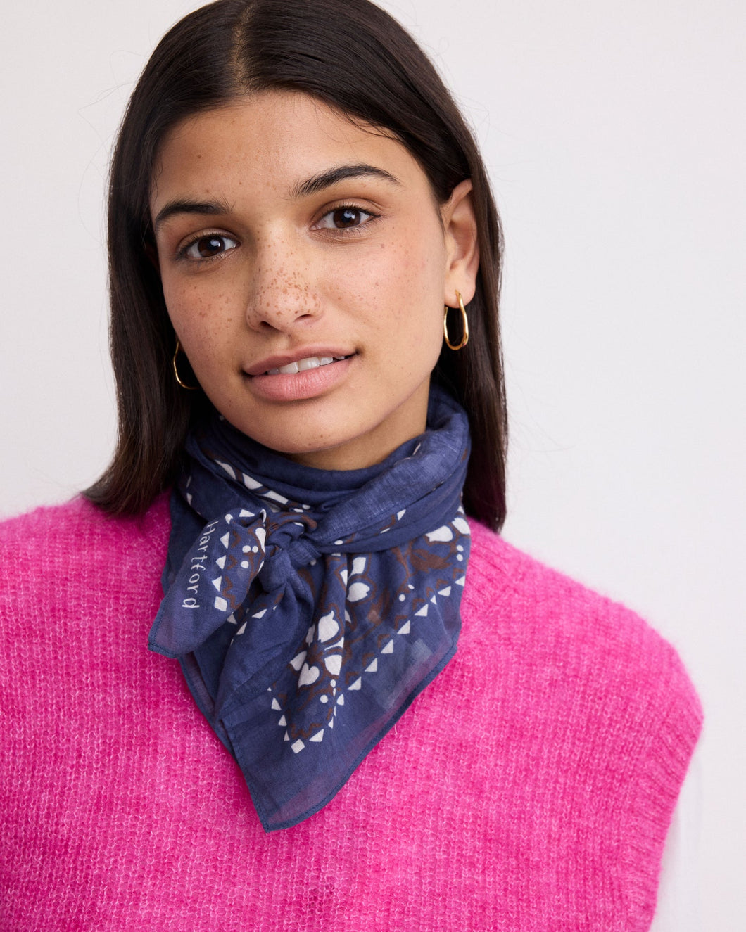 Small women's bandana in exclusive "Hibiscus" printed Cotton Voile