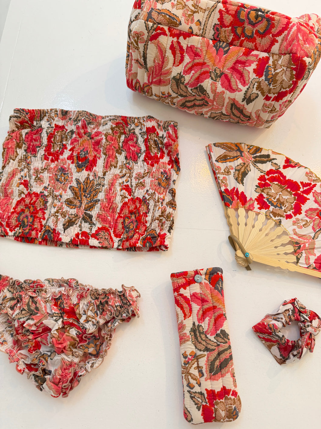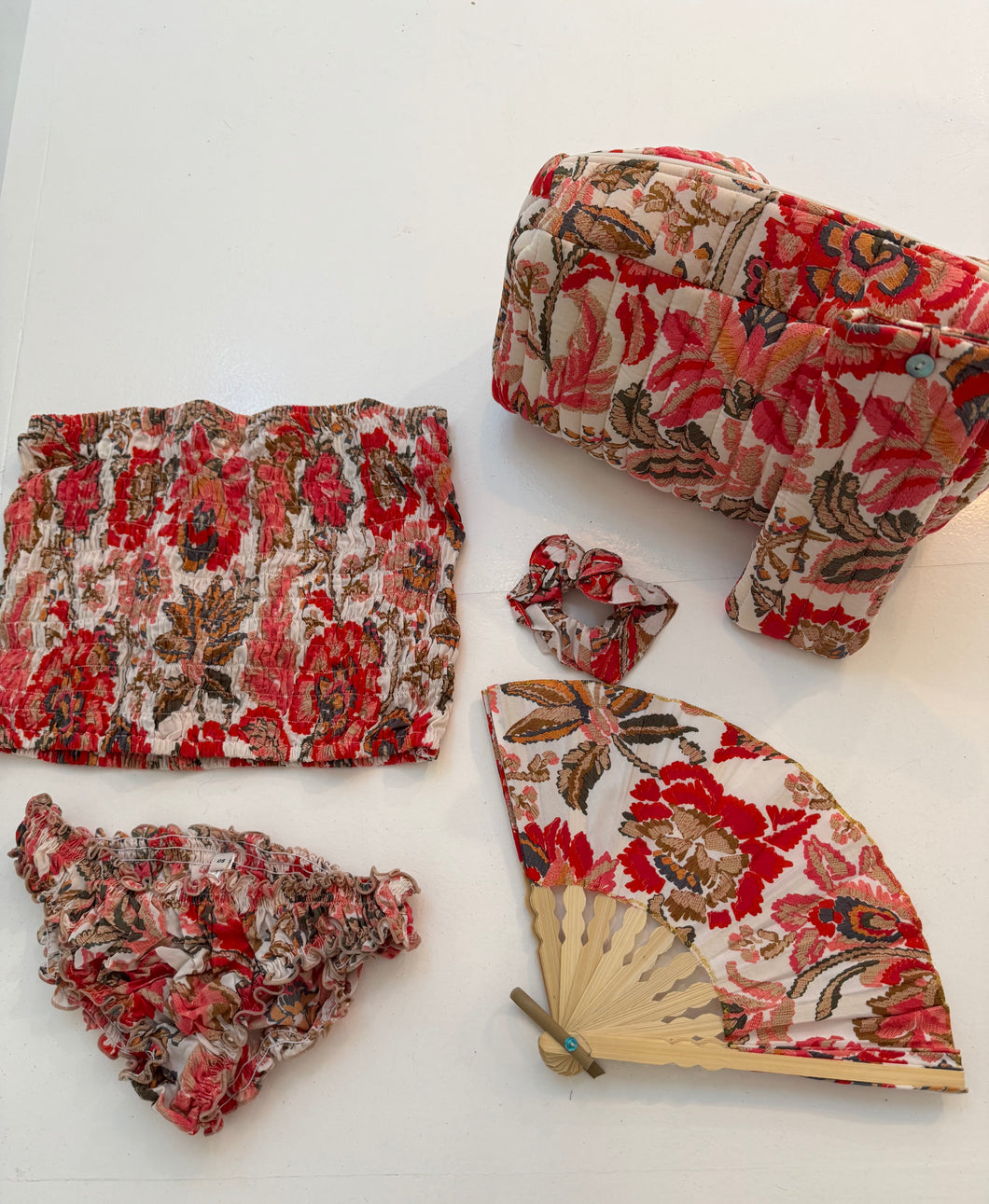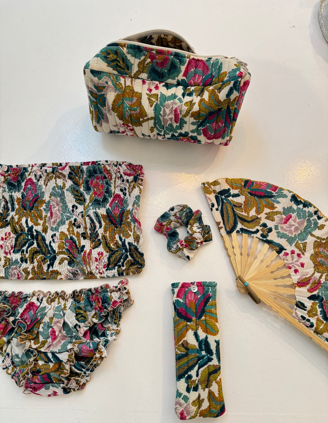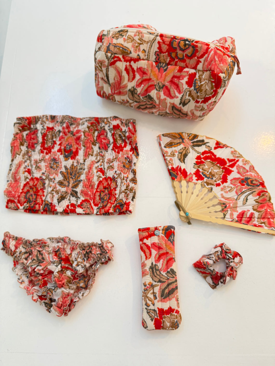 This summer set include : Pouch, Fan, Tube, Undies, sunglasses holders and chouchou