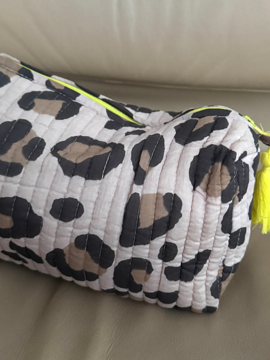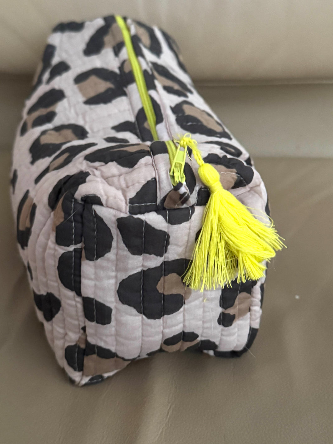 Our printed leopard earthy pouch are ideal for travel or for everyday..