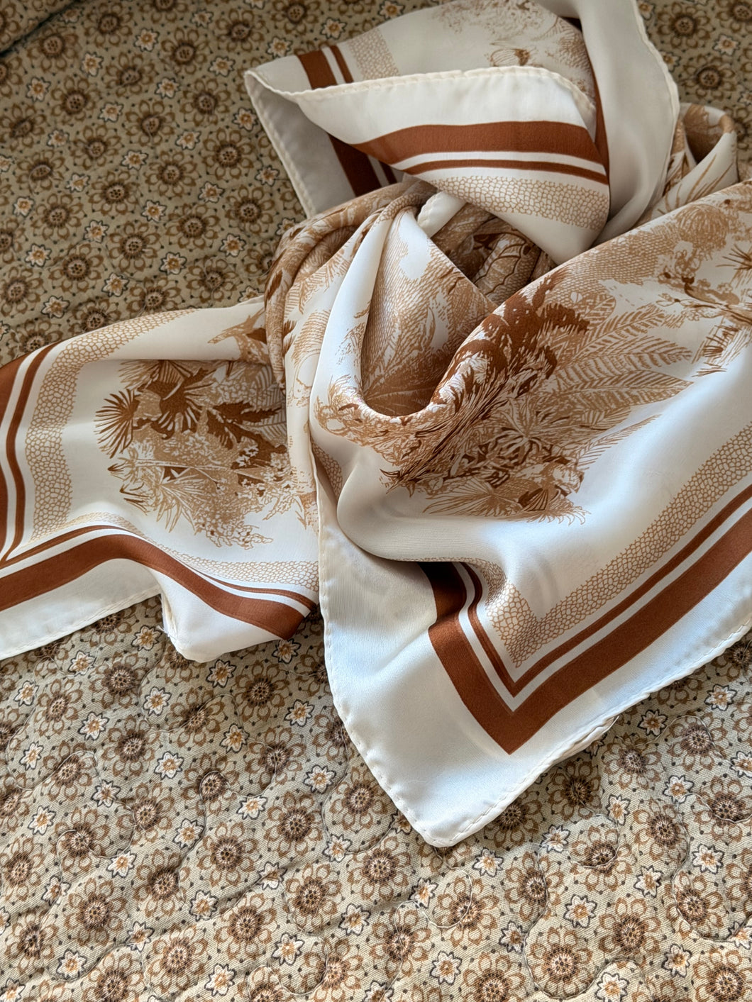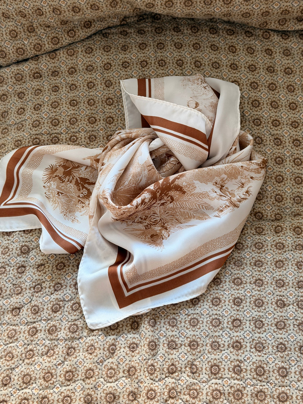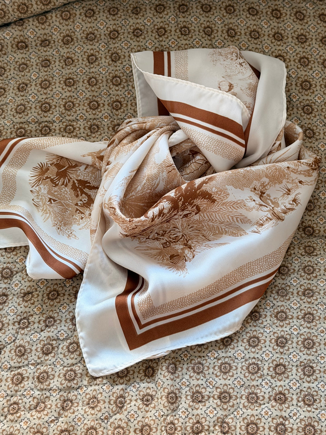 Color: off white with camel print