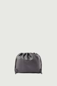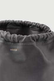 The suzette bag in soft leather. It features a single shoulder strap and a drawstring closure system through the handle