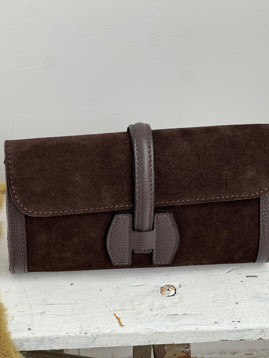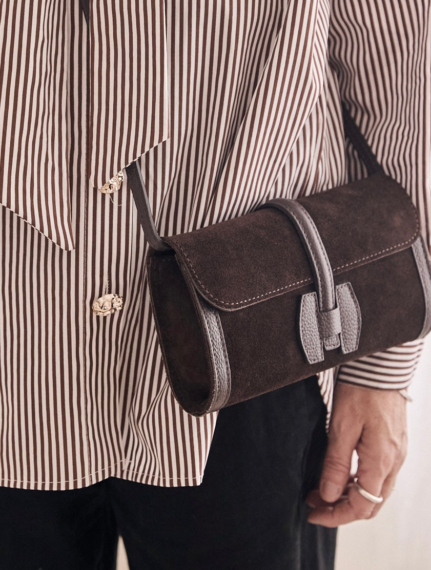 closed by two magnet studs and a leather detail, you can wear it as a pouch or