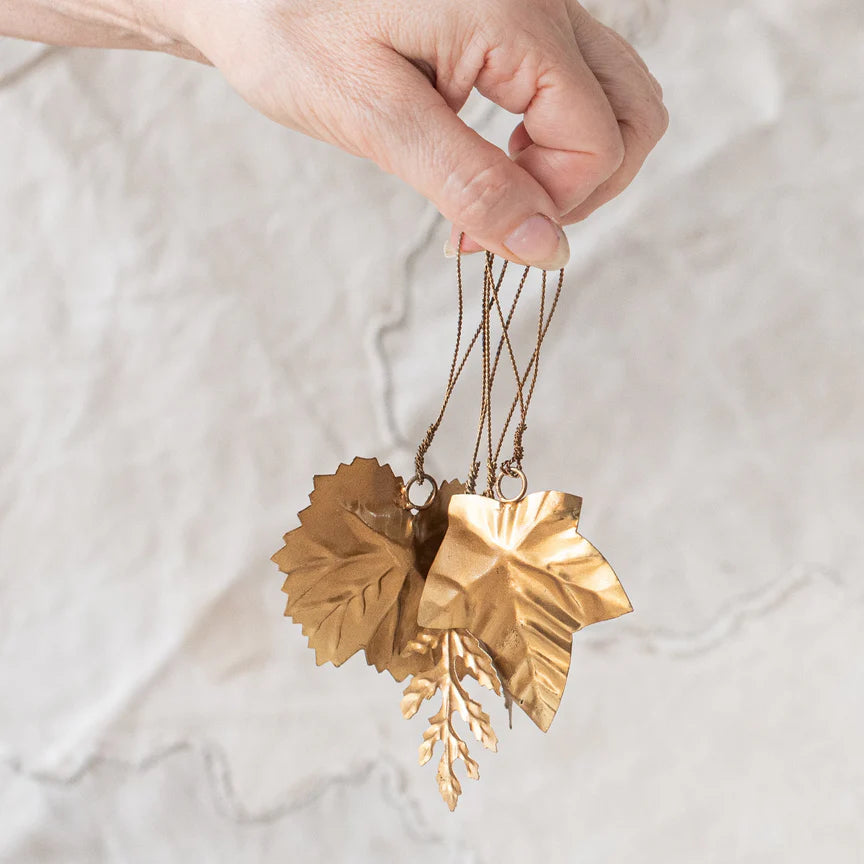 Set of 4 , single golden leaves, prefect for any wrapping, or to be added on the Christmas tree ...