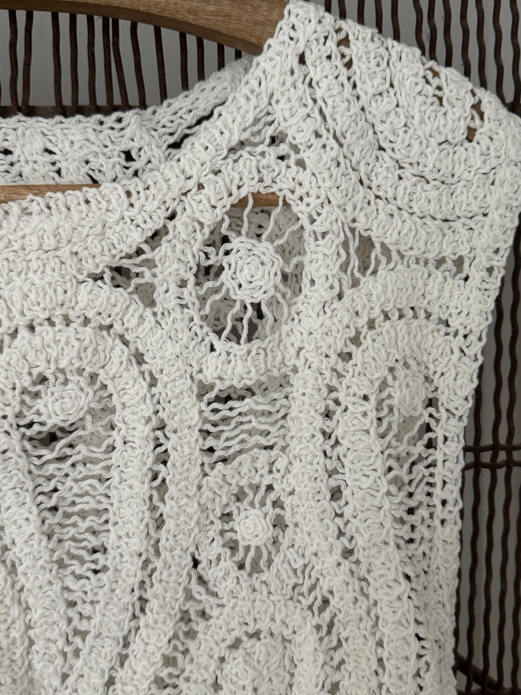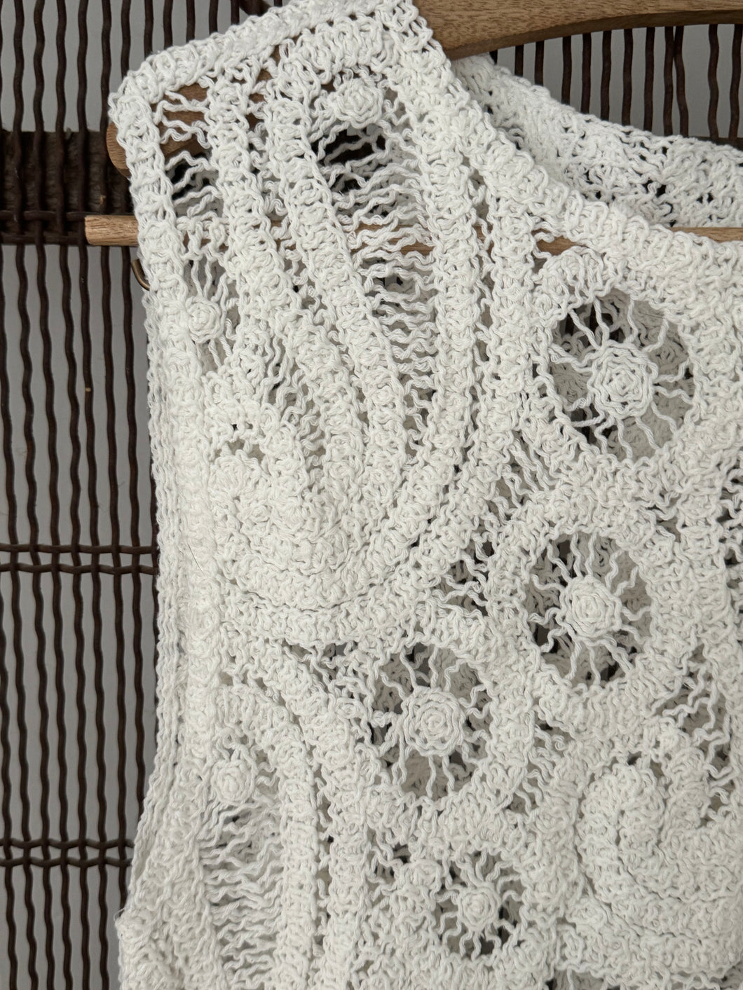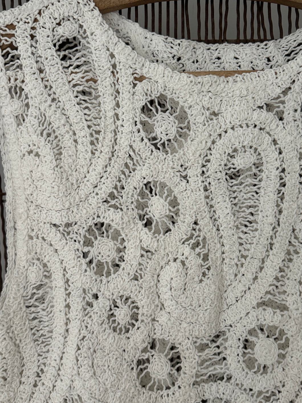 Beautiful crochet sleeveless white round neck top with a cool design ...