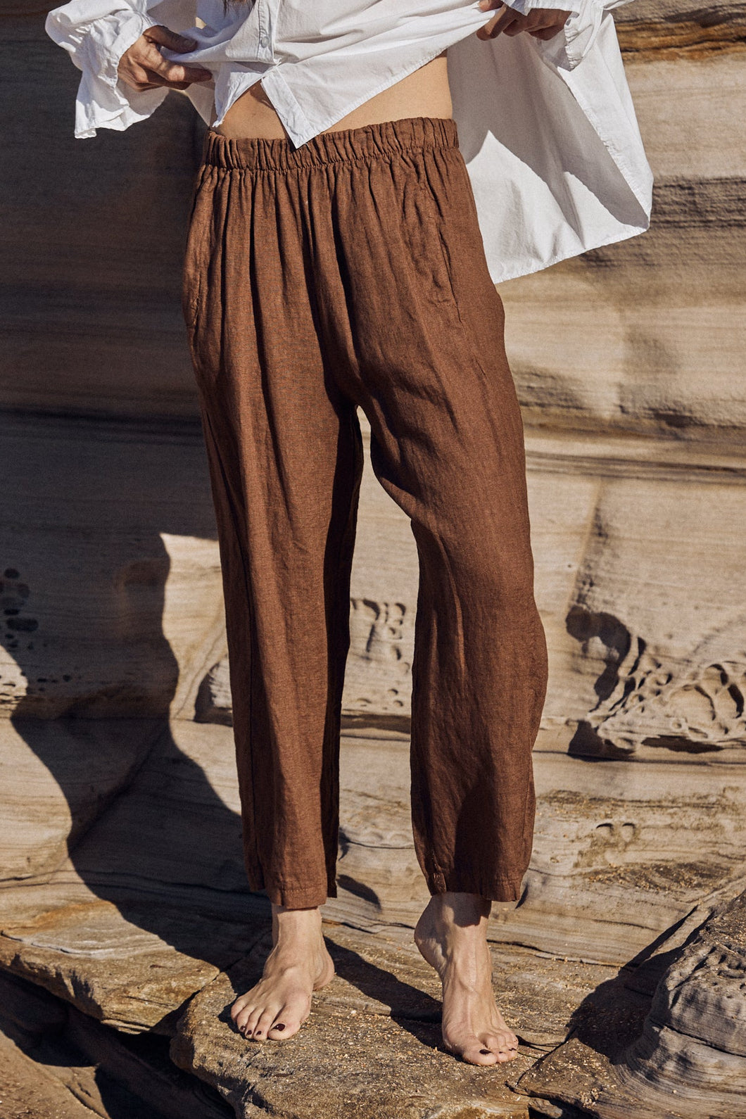 ideal linen pants for summer, lightly oversized and straight cut, those are so comfortable with their elastic waist and two sides pockets