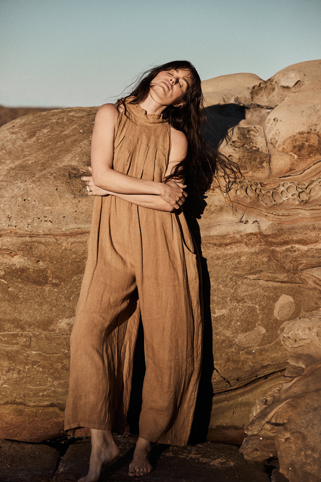 Our sleeveless linen pleated jumpsuit ... beautiful detail, loose and comfortable