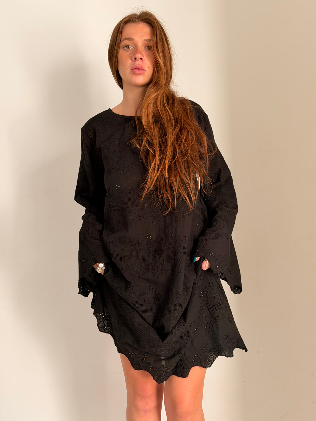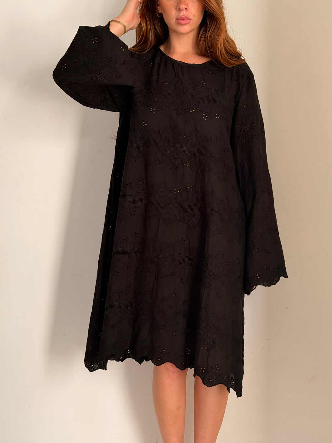 Beautiful cotton broderie black dress