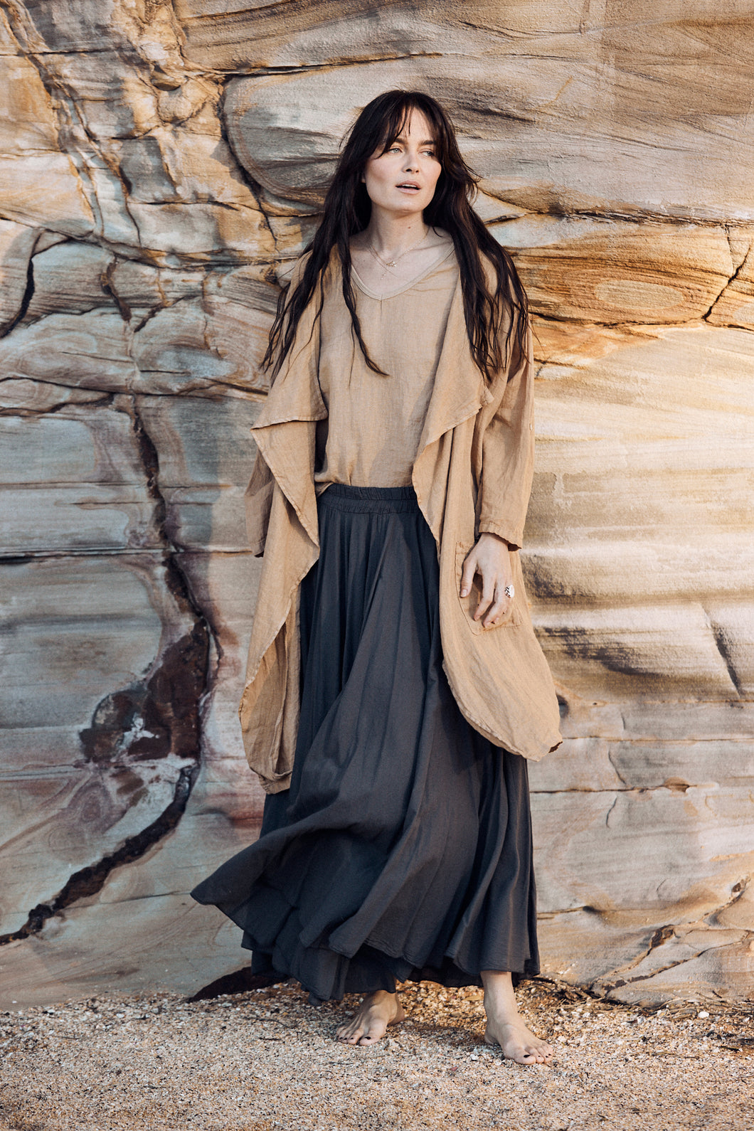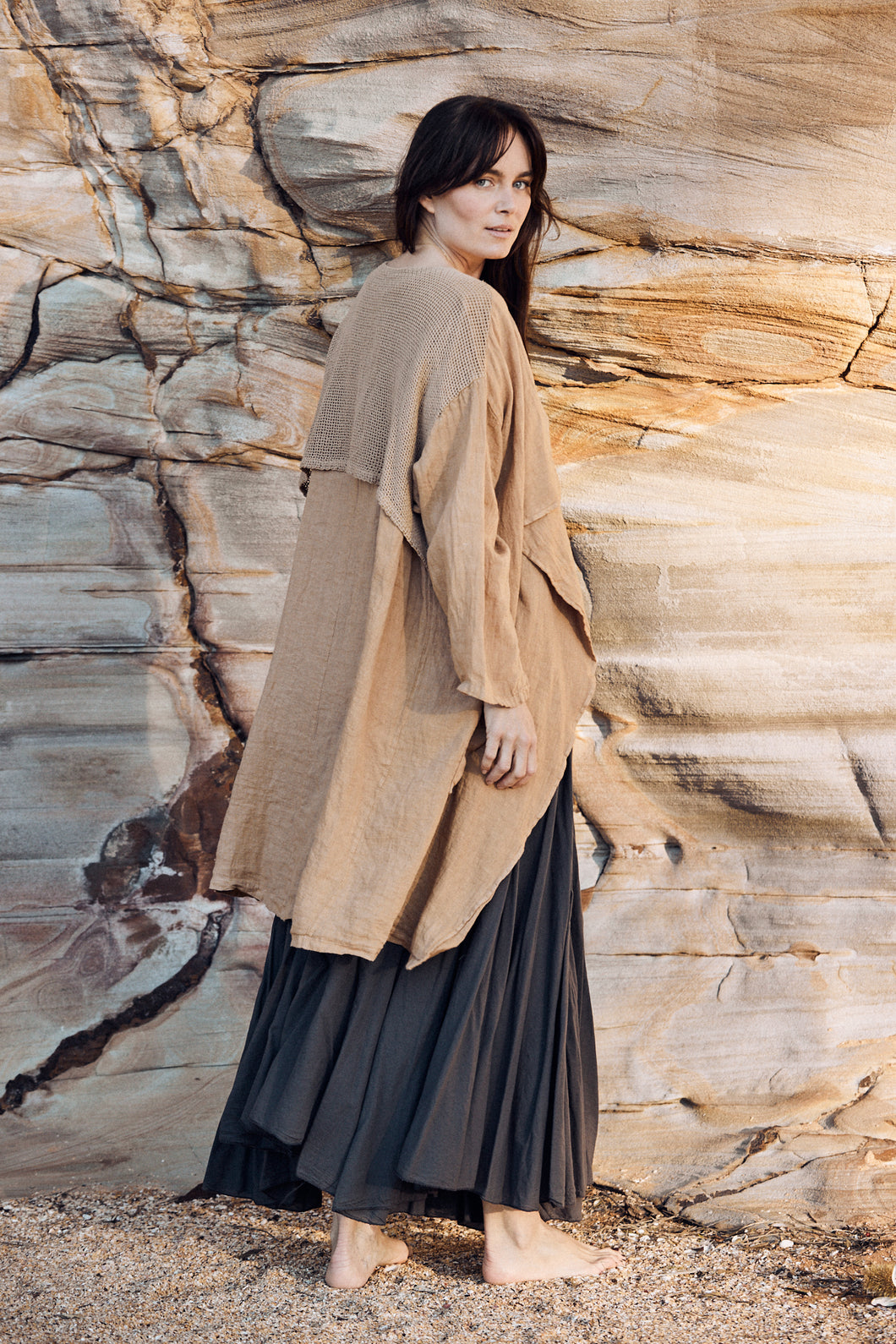 oversized linen jacket, mix of linen and mesh details on the shoulders, we love the a-line cut