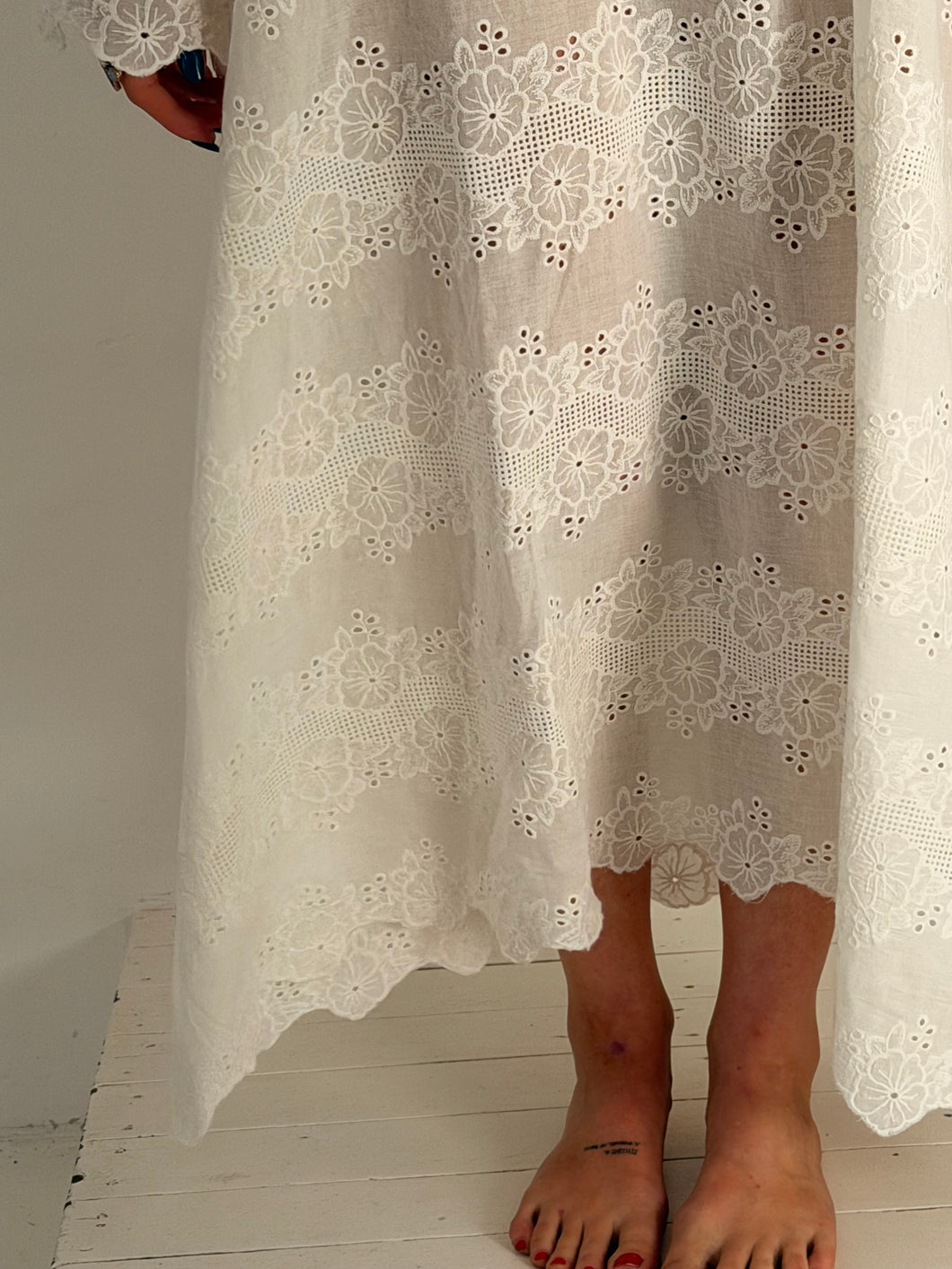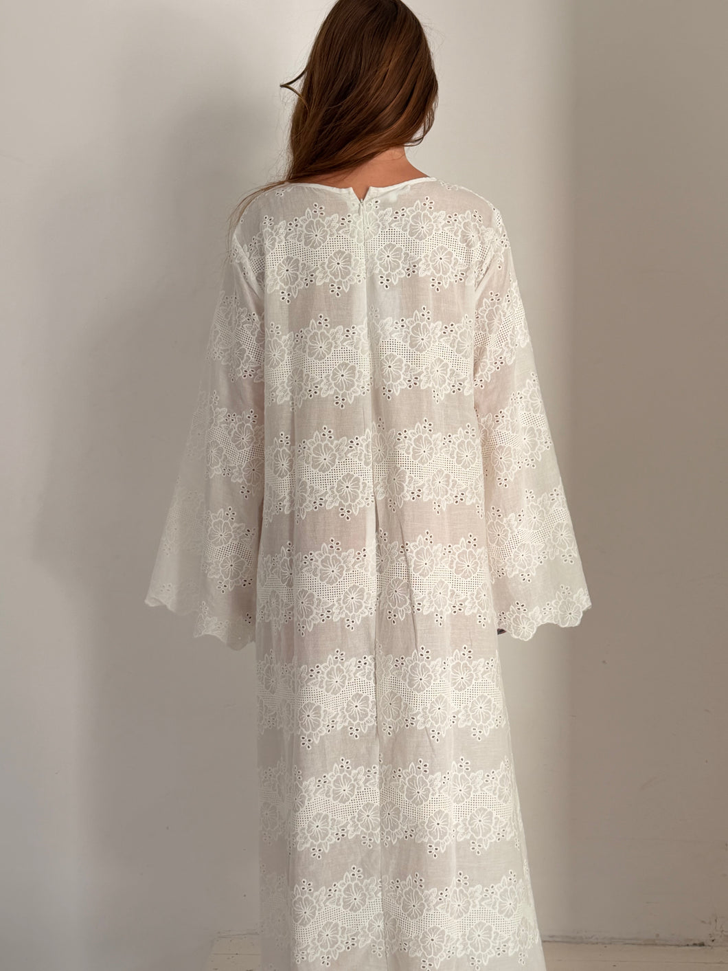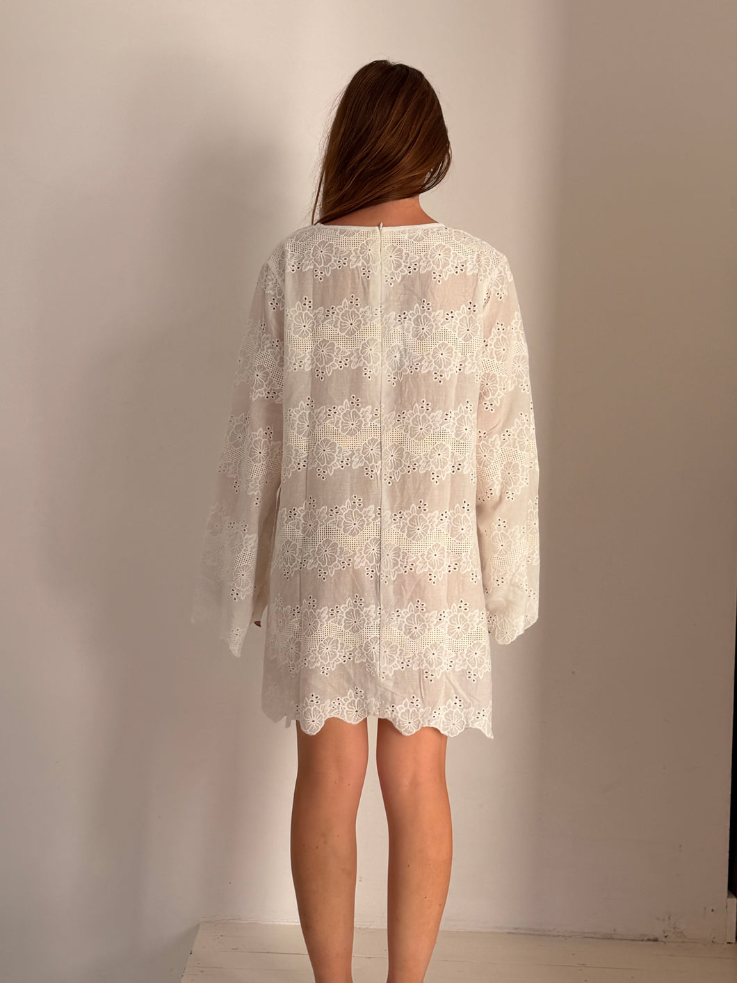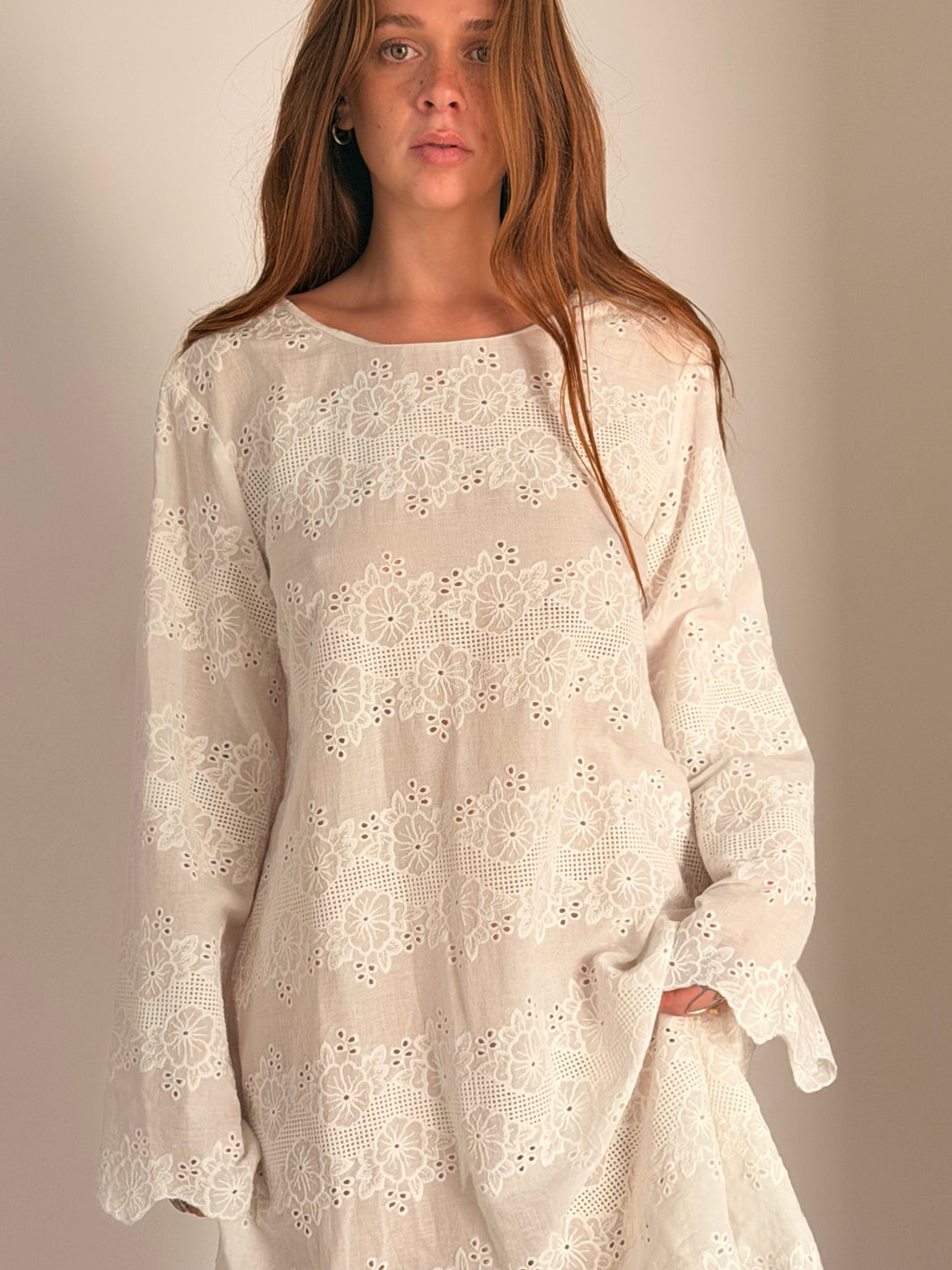 Long 70 style sleeve, beautiful broderie detail in the fabric, round neckline with Wilde sleeve ...