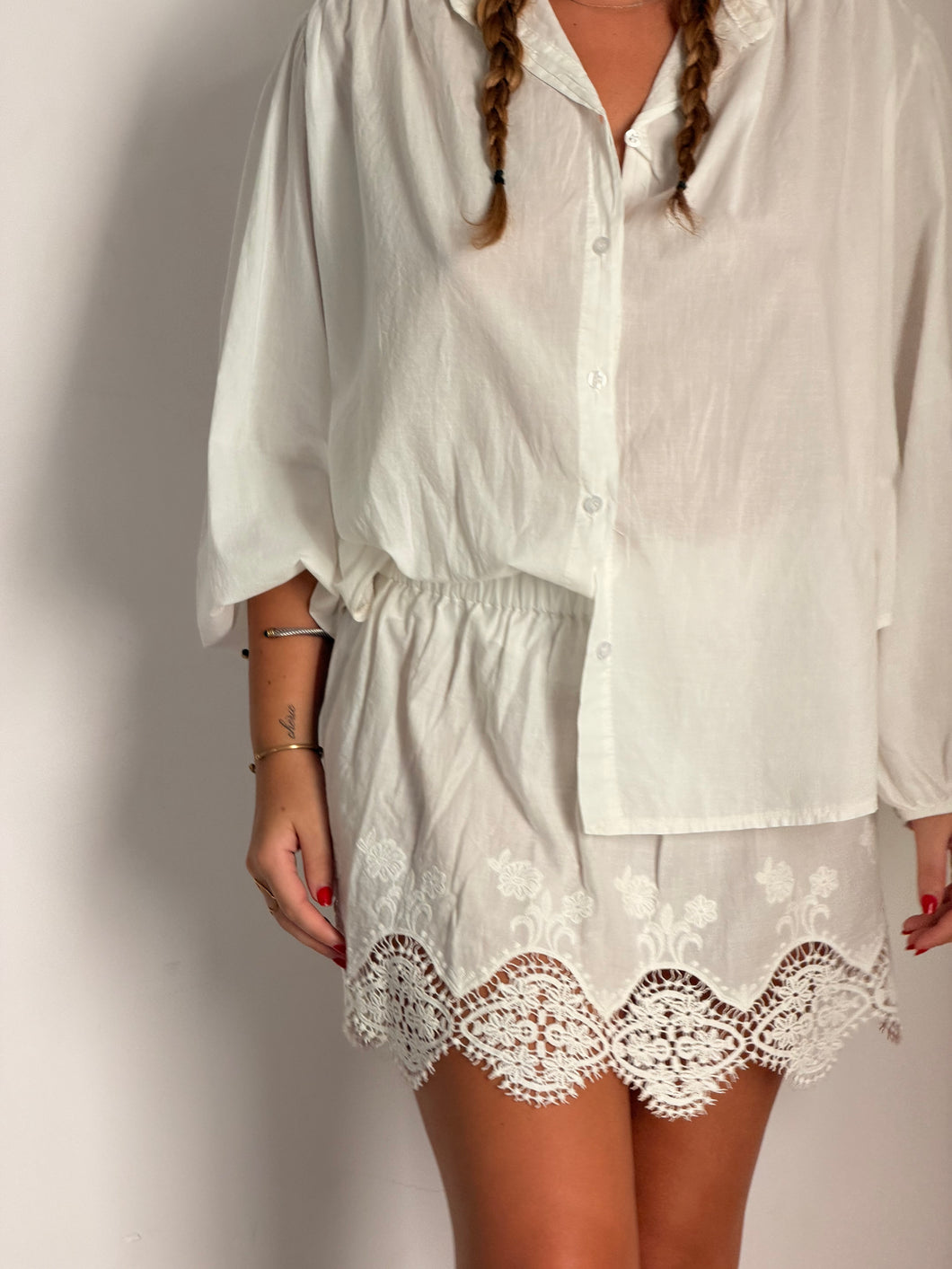 the luna mini skirt cotton and broderie. Can wear it like a mini skirt or also as a top.. Elastic waist.. 30cm..