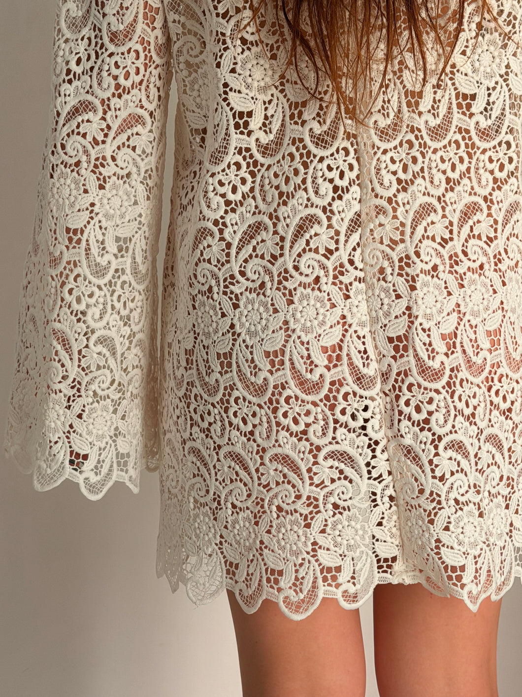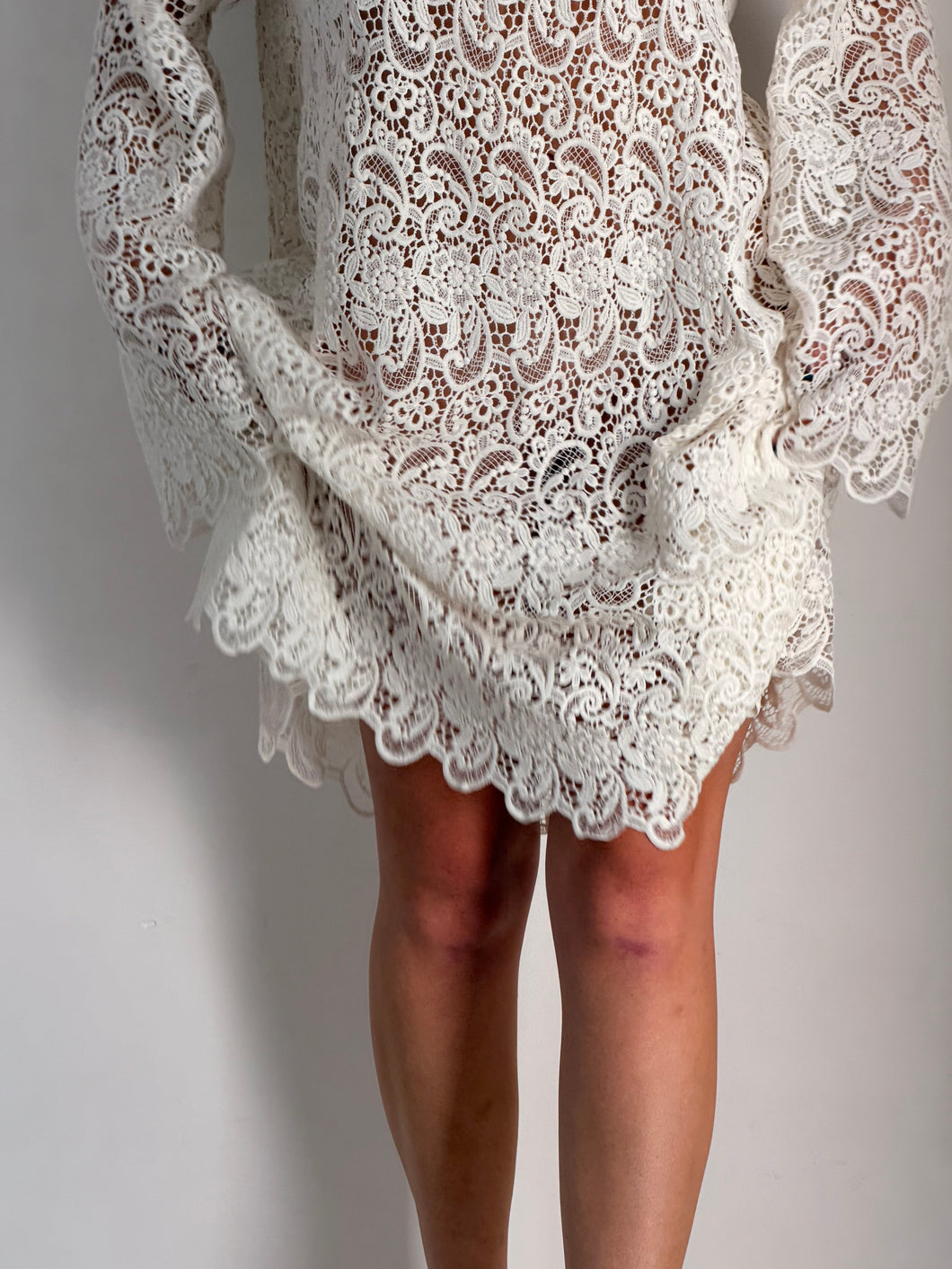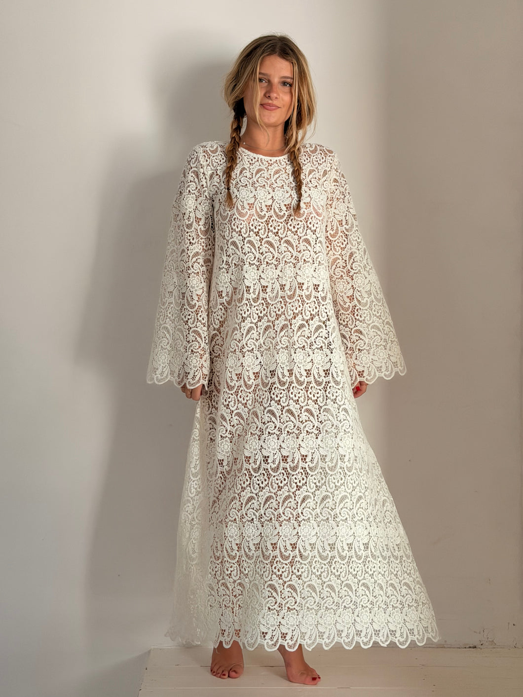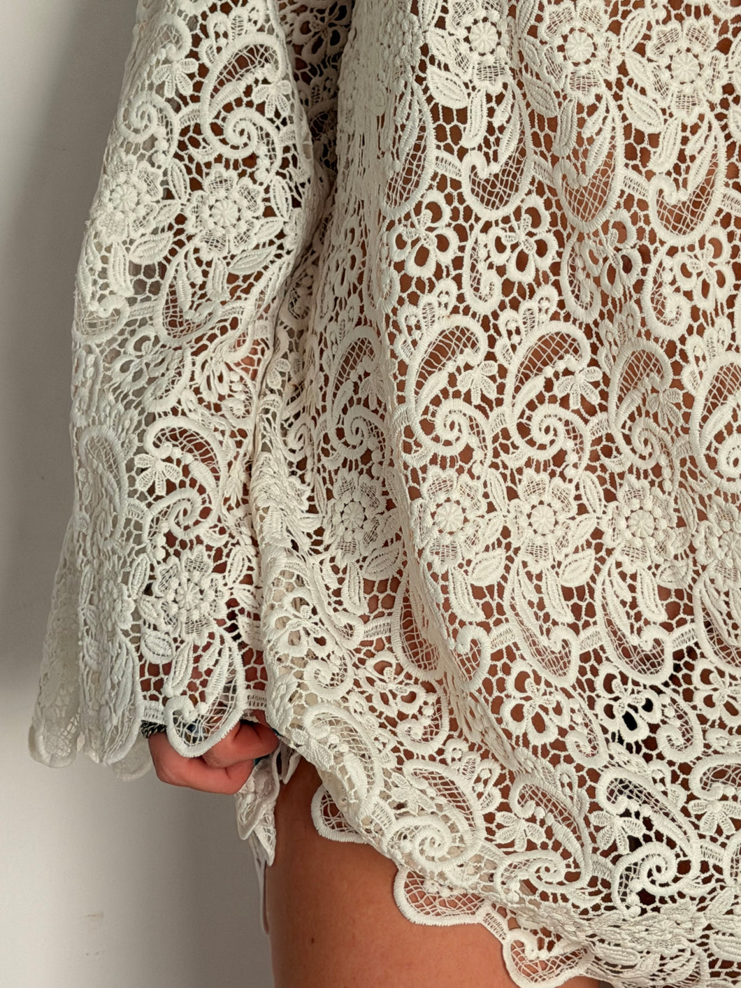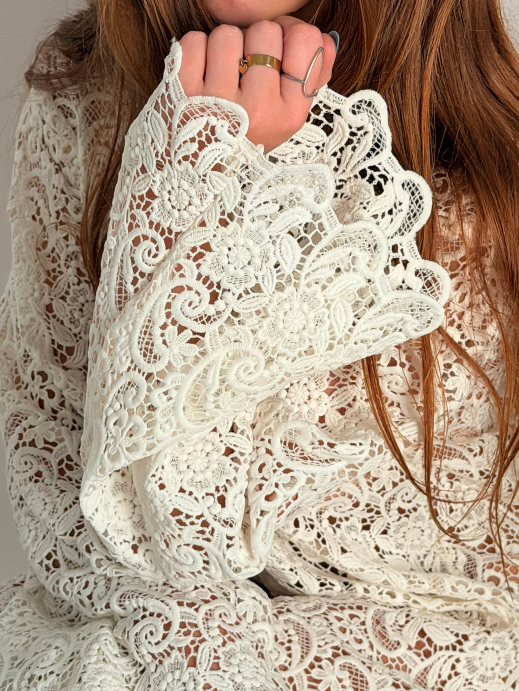 Long 70 style sleeve, beautiful broderie detail in the fabric, round neckline with Wilde sleeve ...