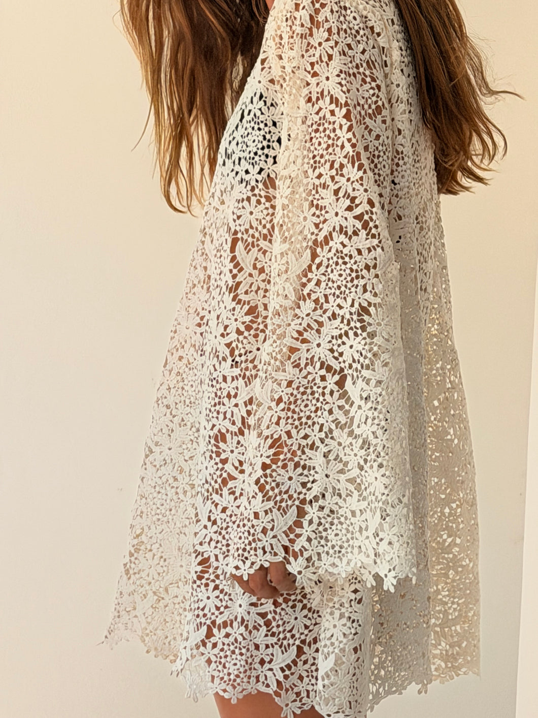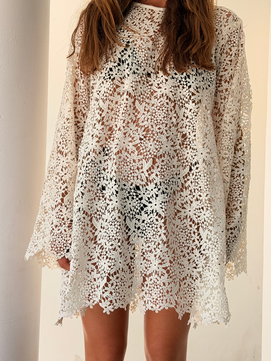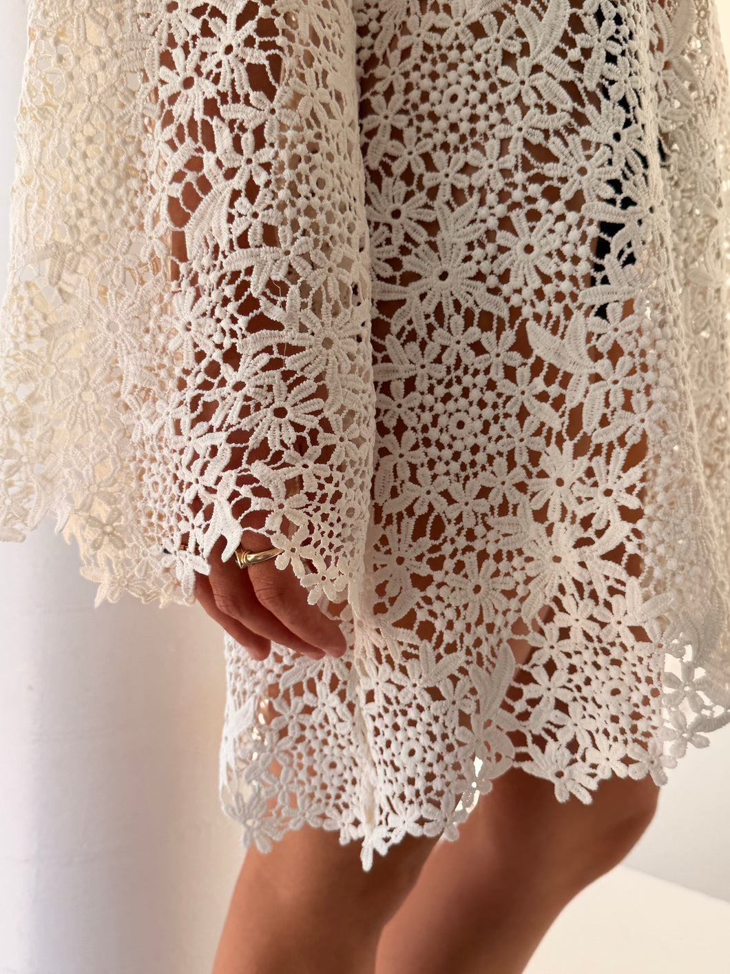 Long 70 style sleeve, beautiful broderie detail in the fabric, round neckline with Wilde sleeve ...