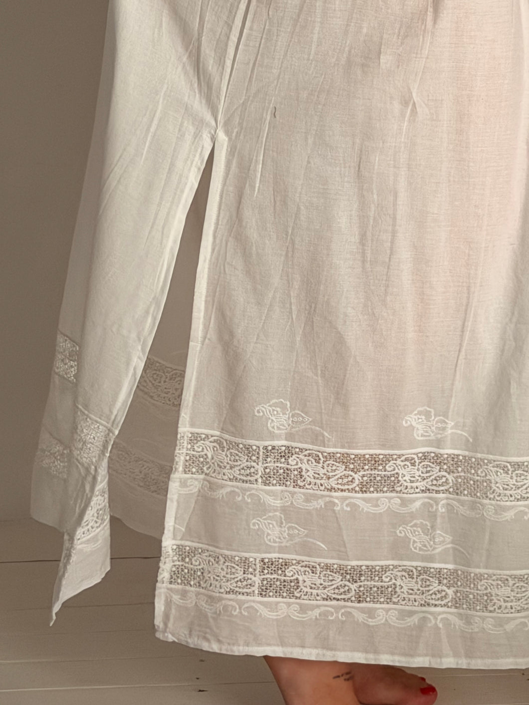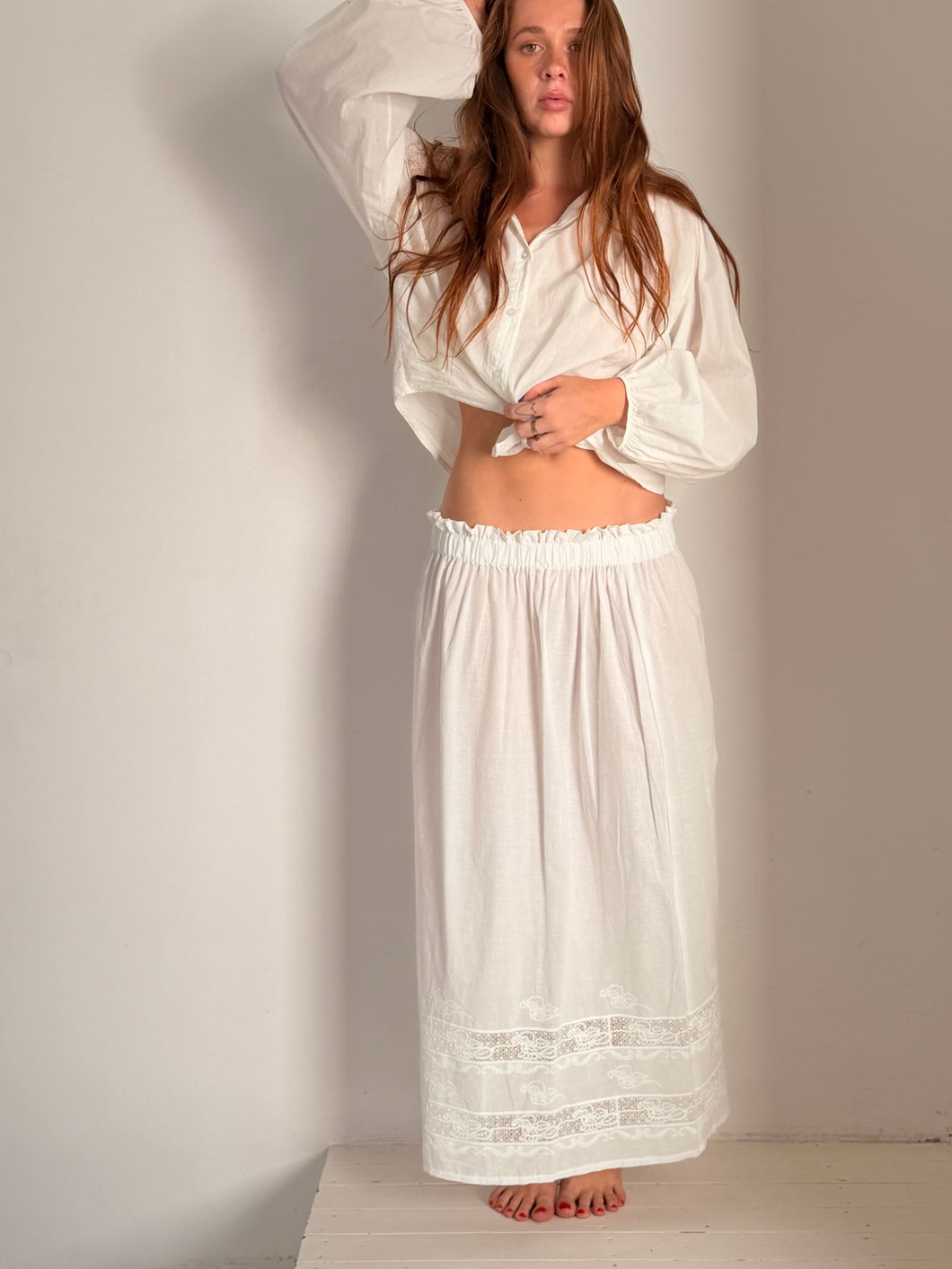 the luna long skirt cotton and fine lace broderie. Can wear it like a long skirt or also as a dress.. Elastic waist..