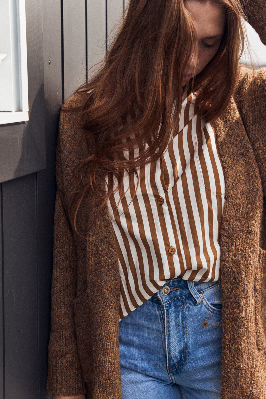 striped oversized shirt, made in cotton this shirt is ideal for mid season and all the way to summer